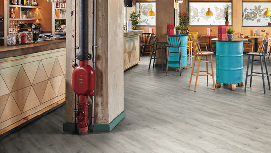 Lo strato di usura di 0,55mm rende gli articoli della gamma adatti ad ambienti commerciali ad alto traffico.